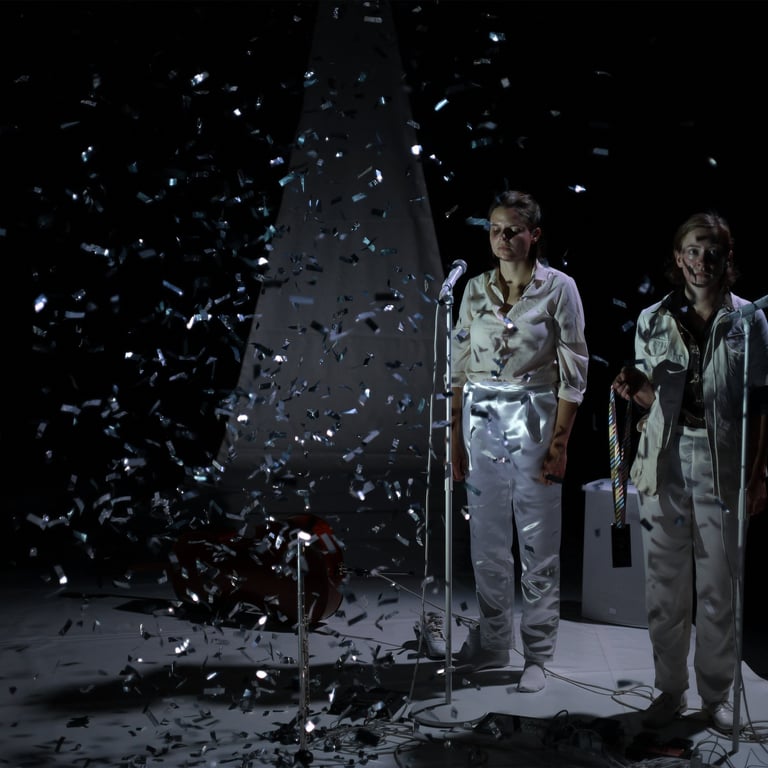 Vanuit alle onverwachte, onverwerkte en onbenullige gevoelens die bij het verliezen kwamen kijken, maakten ze Eerst: een voorstelling over winnaarsmentaliteit en competitiedrang. En over het gebrek daaraan. Over meisjes die niet snel kunnen rennen en als laatste mogen kiezen van de prijzentafel. Over tekentoernooien en ballonnenwedstrijden. Over opofferen, doorgaan en toch falen. Over als eerste op de zuidpool willen zijn. Vooral over als eerste op de zuidpool willen zijn.
